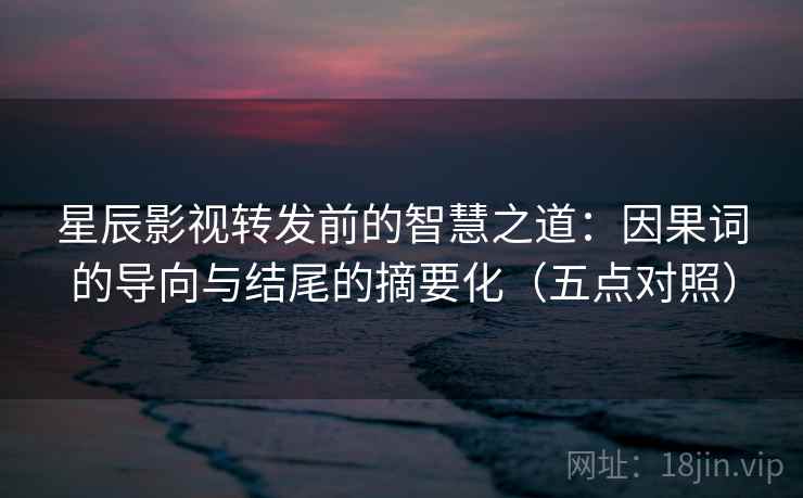 在影视推广中,精准的转发策略至关重要。为了帮助您在推广中获得更好的效果,本文将深入探讨“星辰影视想转发前:先看因果词有没有带方向,再把结尾改成摘要(五点对照)”这一主题。通过对因果词的导向和结尾的摘要化进行详细分析,为您提供一套高效的影视内容传播方法。